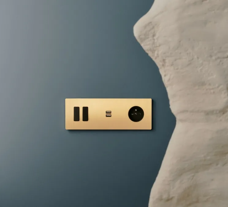 Doté d’une finition en laiton brossé, cet interrupteur et prise ajoute une touche de luxe discret à votre intérieur. Son design horizontal triple offre une présence remarquable sur vos murs, tout en s’intégrant harmonieusement à différents styles de décoration. Pour un effet optimal, placez-le dans des espaces où le minimalisme sophistiqué est recherché, en le mariant avec des matériaux naturels comme le bois ou des tons neutres pour créer une ambiance apaisante et chic.