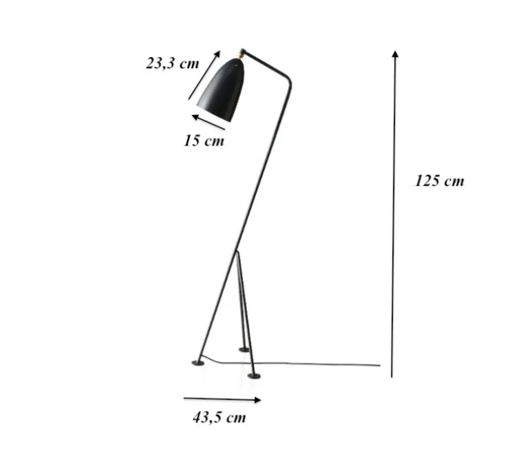 L’ensemble du trépied et l’abat-jour mesurent respectivement 125 cm et 23,3 cm.