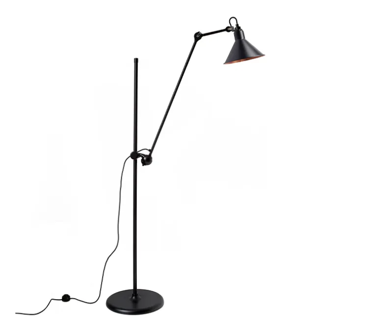 Le lampadaire Lampe Gras N°215 est composé d’un socle, d’une longue tige sur laquelle est fixé un long bras articulé pouvant glisser de haut en bas et son abat-jour orientable. Les Lampes Gras ont été pensées comme une gamme de lampes pour l’industrie et les bureaux d’études, à la fois fonctionnelle par leur ergonomie, étonnante par la simplicité de la mécanique (ni vis, ni soudure) et belle par l’esthétisme du trait de designer. Lampe Gras N°215 est graphique, stable, racé ; le lampadaire apporte une touche industrielle et brute, qu’il soit placé dans un espace public ou privé, qu’il soit utilisé dans un espace de vie, une chambre ou un bureau.