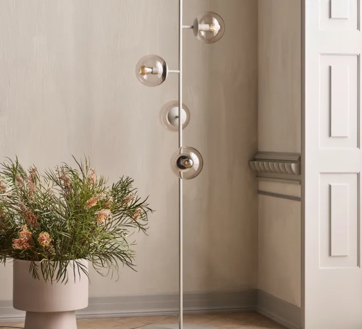 L’utilisation des matériaux tels que le verre pour les différents diffuseurs, et le métal pour la base, répond à une volonté de respecter fonction, qualité et esthétisme de l’objet. On devine ainsi le respect des valeurs traditionnelles du design nordique ainsi que le désir d’innover en proposant raffinement et élégance.