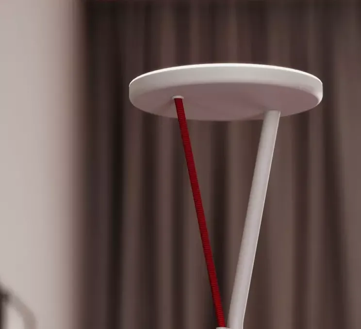 Voici le lampadaire Rìo F72 de couleur blanche avec son câble rouge, du designer Filippo Protasoni pour la maison d’édition Fabbian !