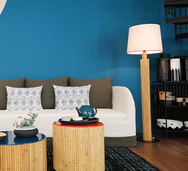 Découvrez Le lampadaire Riviera en fintion naturel imaginé par Sarah Poniatowski pour la maison d’édition Française Sarah Lavoine.