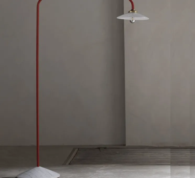 Le design de cette lampe est d’une simplicité presque naïve, et pourtant, les lignes qui la compose remplissent l’espace de manière ludique et colorée. Le lampadaire n°1 est composé d’un long tube en acier coudé, fixé à la base sur un socle en marbre et d’un abat-jour en verre blanc. Selon Hannes Van Severen, ce luminaire « a une forme fantastique : parfaitement neutre ».