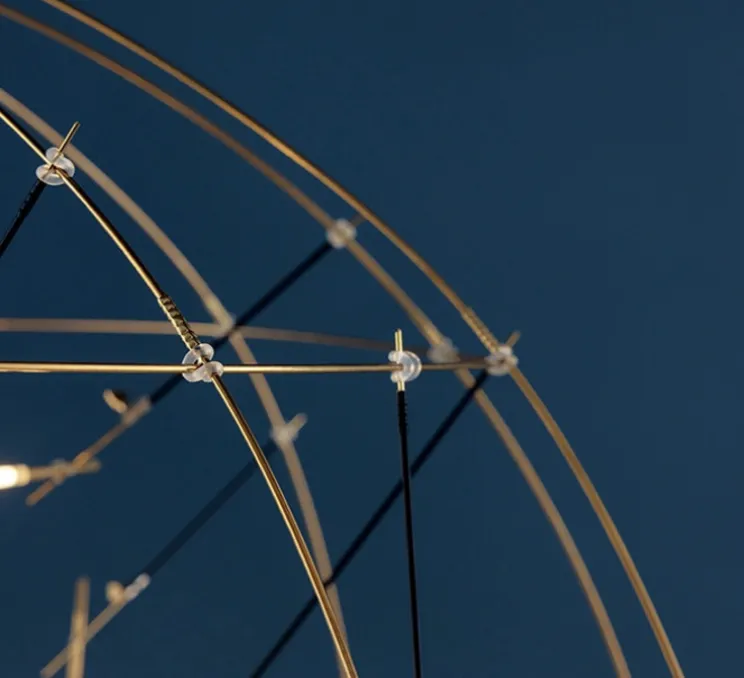 Son volume sphérique en laiton doré capte le regard par son éclat chaleureux. Placé dans un séjour, une chambre ou un hall d’entrée, Pòta diffuse une lumière enveloppante qui met en valeur les espaces tout en créant un point focal. L’association de légèreté visuelle et de présence sculpturale permet de l’intégrer aussi bien dans des intérieurs contemporains que dans des décors plus classiques.