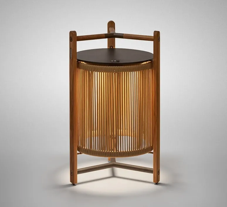 Inspirée par l’esthétique japonaise, cette lampe élégante marie à la perfection fonctionnalité et design. Les lampadaires Kando diffusent une lumière chaude et accueillante, filtrée à travers un abat-jour unique en ruban pour l’intérieur ou en corde nautique pour l’extérieur. Leur structure légère en bois de teck fait office de poignée, facilitant ainsi leur transport. Grâce à un bouton poussoir manuel, vous pouvez ajuster la température de couleur selon vos préférences, avec des options de 2200K, 2400K et 2700K.