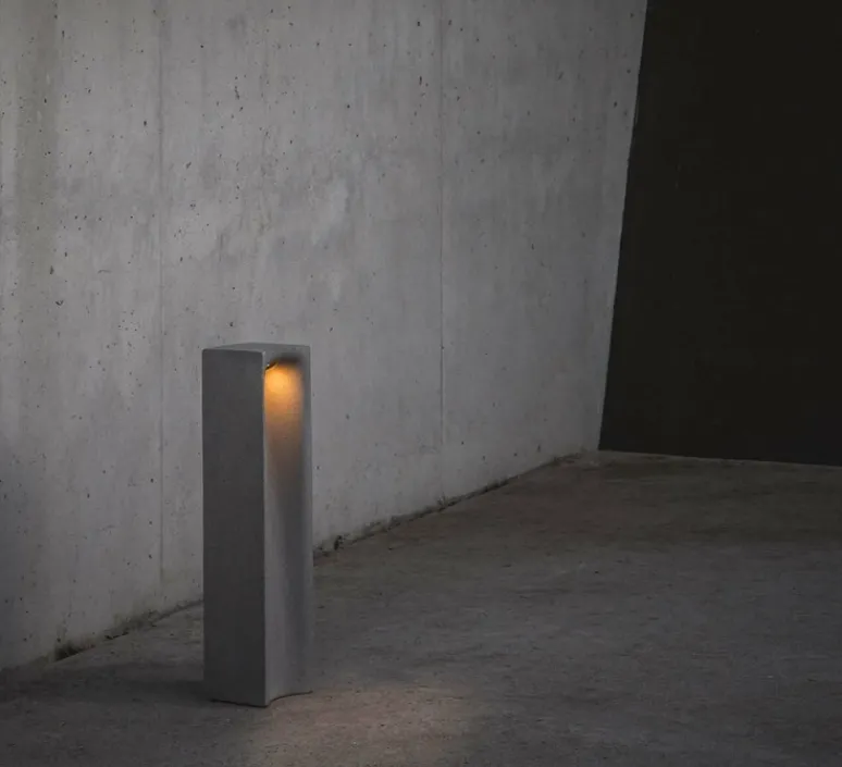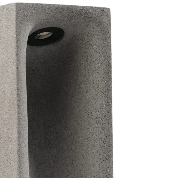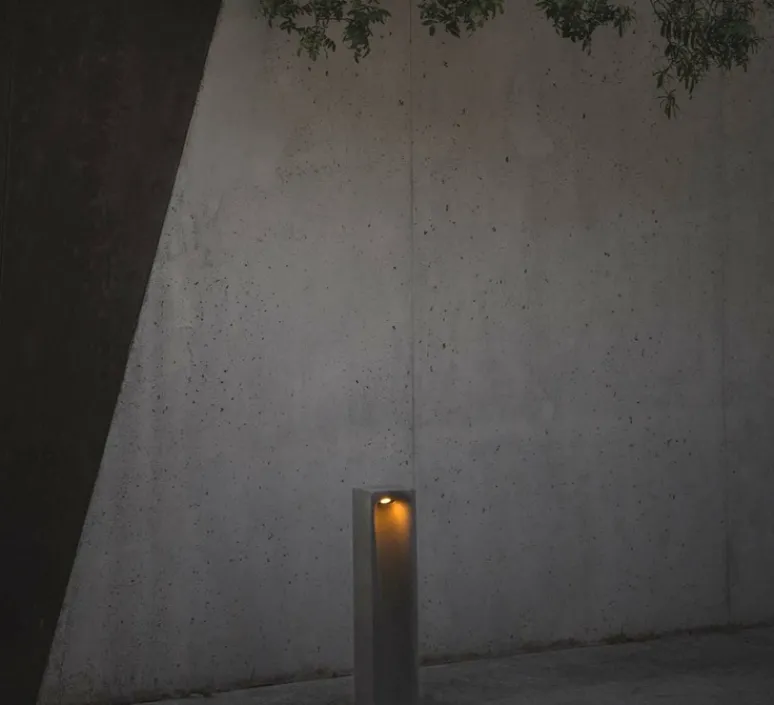 Avec son design cubique minimaliste et sa finition brute en béton, la borne Grot 700 s’affirme par sa sobriété visuelle et sa robustesse. Elle s’installe idéalement le long des allées, chemins ou zones de passage, où elle diffuse une lumière directionnelle douce qui structure l’espace sans l’envahir. Sa matière brute s’accorde harmonieusement avec des graviers, dalles en pierre ou plantations graphiques.