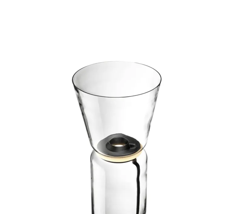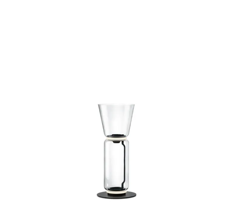 Noctambule Floor est un luminaire composé d’un à quatre éléments cylindriques, hauts ou bas, aux bords arrondis en verre, connectés entre eux pour atteindre une hauteur de 2,17 mètres dans sa plus haute version. Certaines versions ont l’option d’avoir en haut un élément conique ou demi-sphérique. Par sa flexibilité de composition, Noctambule est un lampadaire pouvant s’adapter à chaque espace, que ce soit un élément unique comme lampe à poser, ou comme totem lumineux à quatre éléments dans un salon.