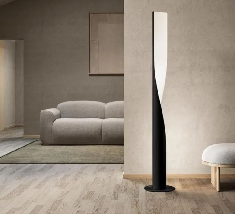 Le lampadaire Evita illustre cette idée. Son allure torsadée et contemporaine fait de ce luminaire une pièce de design incontournable. Il est composé d’une structure en métal verni coupée au laser et d’un diffuseur opalin en méthacrylate.