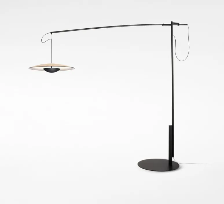 Ce lampadaire créé par Joan Gaspar pour la maison Marset fait référence à un disque de lumière extrêmement léger et rend hommage aux tambours de Ginger Baker de Cream, le groupe de rock des années 1960.