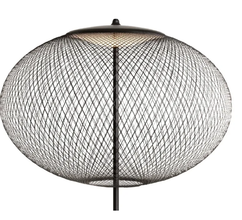 Le lampadaire NR2, conçu par Bertjan Pot, est une pièce d’éclairage élégante et polyvalente qui complète la famille des luminaires suspendus NR2. Ce lampadaire se distingue par une bulle ovale lumineuse, fabriquée à partir de fils blancs ou noirs, qui crée un motif en treillis aérien captivant.