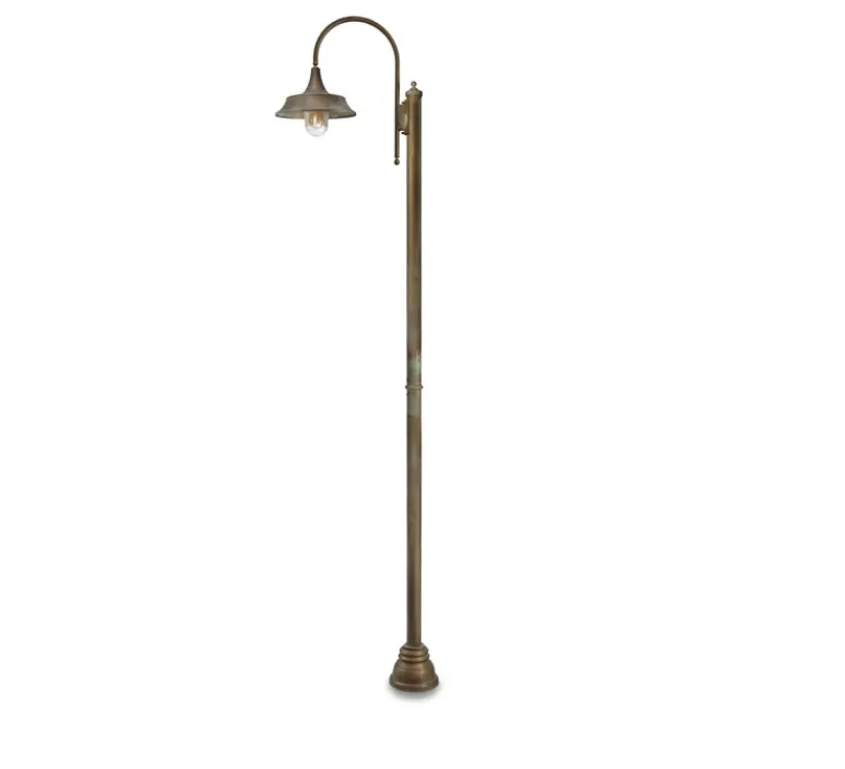 Il peut également être utilisé dans des environnements très agressifs et dans des conditions atmosphériques difficiles comme les zones côtières ou la montagne. La couleur cuivre et la composition en laiton vieilli de ce lampadaire en font un luminaire robuste et simple au design unique.