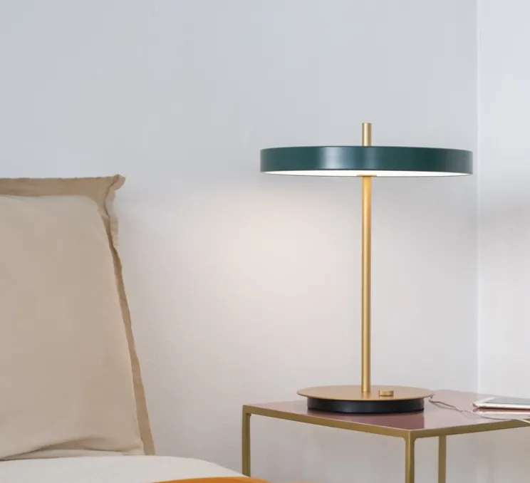 Voici Asteria en version lampe à poser dans un coloris vert forêt.