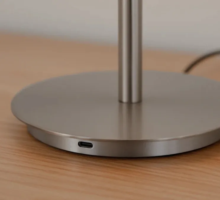 La lampe de table Audrey peut être dimmée grâce à un bouton discret situé au sommet de la lampe, permettant ainsi d’ajuster la lumière pour créer différentes ambiances – allant d’une lampe pratique pour votre bureau à une lampe douce et chaude pour votre table de lit. La lampe est équipée d’un port USB-C, ce qui facilite la charge de votre téléphone, tablette ou autres appareils.