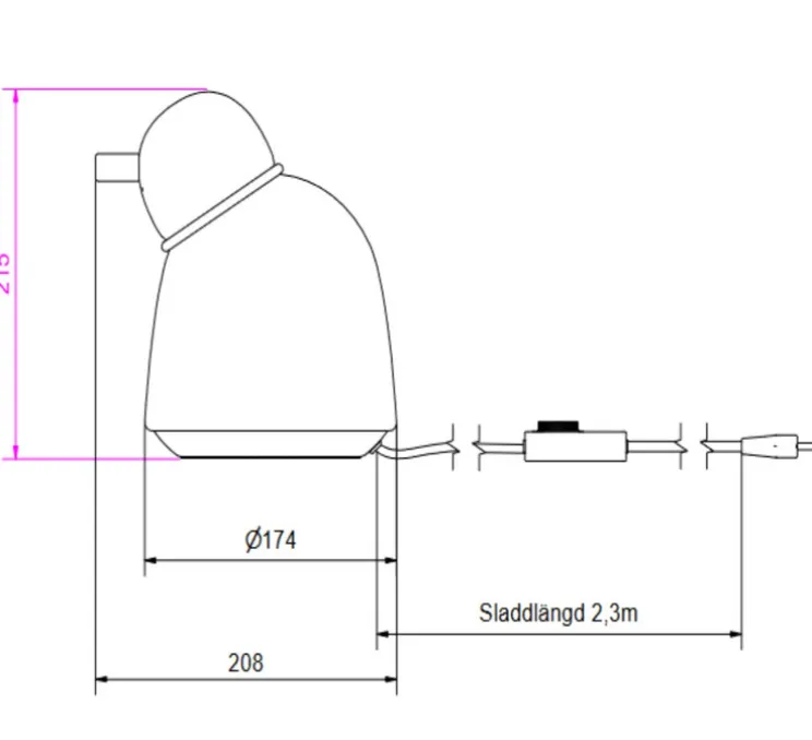 La lampe Bird mesure 17,4 cm de diamètre, 21,5 cm de hauteur et est équipée d’un câble de 2,3 mètres de couleur noire, offrant une grande flexibilité dans son installation. Son éclairage direct est dimmable, permettant d’ajuster l’intensité lumineuse selon vos besoins.