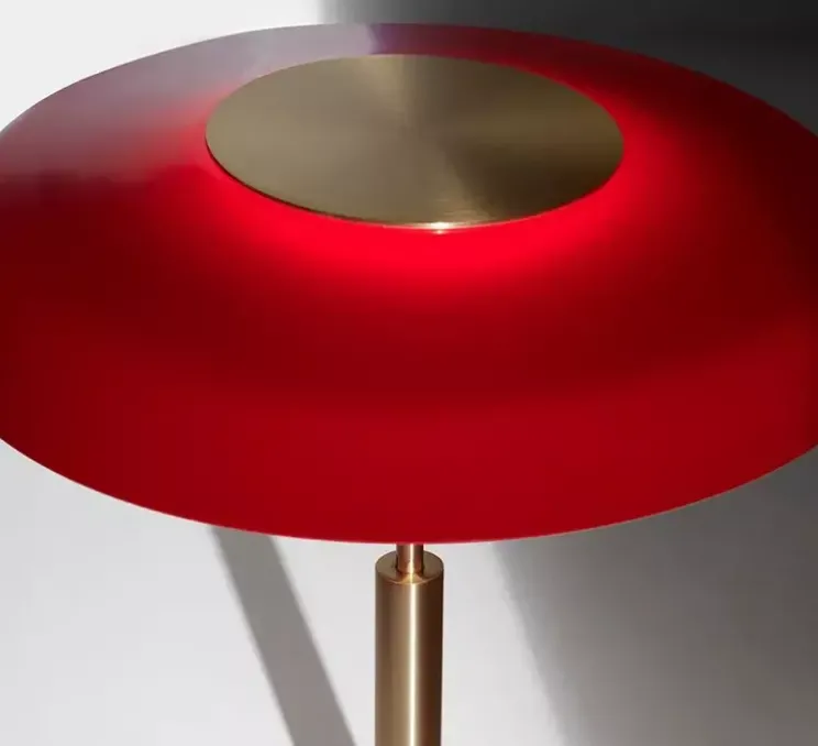 Voici la lampe à poser Dora 271 de couleur rouge sablé, conçue par le studio Angeletti Ruzza design pour la maison italienne Oluce !