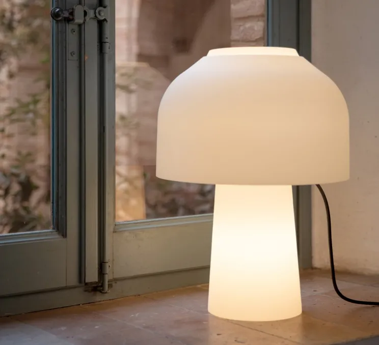 Lampe à poser, Lilly, verre givré, blanc mat, Ø36cm, H48cm – Karman