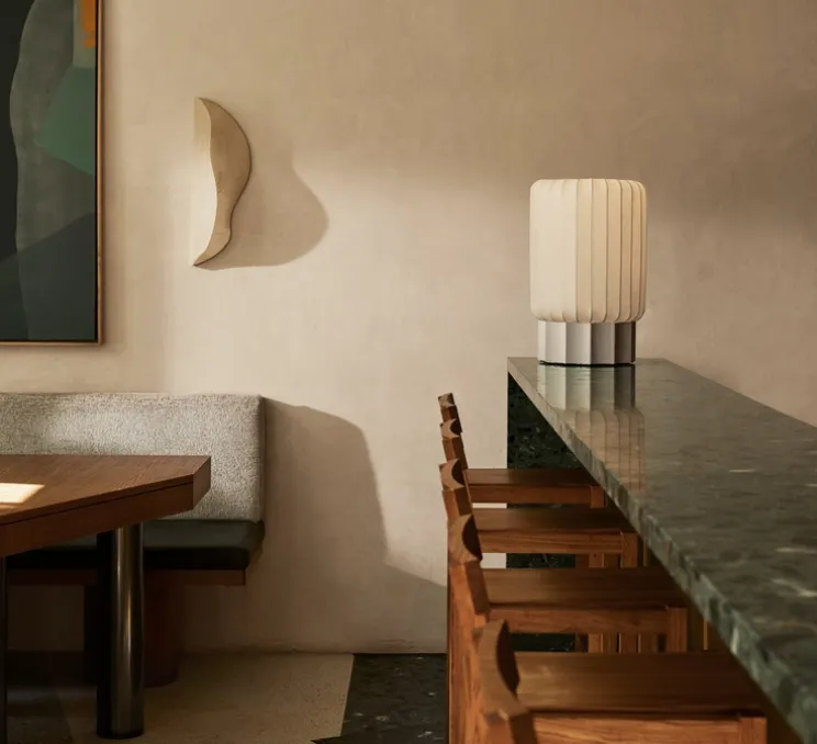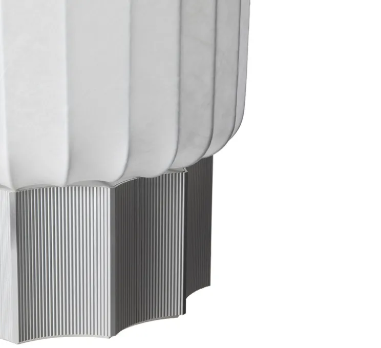 Meter est une collection chaleureuse et douce avec des références architecturales et des détails artisanaux soigneusement réunis. Le design de la lampe est dynamique et stimulant, un objet qui ne laisse personne indifférent. Un rythme géométrique naturel relie les fils derrière l’abat-jour translucide à la base cannelée en forme de colonne. Parallèlement, le contraste entre le tissu lisse du cocon et l’aluminium brut crée une nette tension. Un mariage improbable. Lorsqu’elle est allumée, la lampe diffuse une lumière atmosphérique chaleureuse dans son environnement, donnant du caractère et de la douceur à n’importe quel espace. Meter est une lampe design qui améliore la scénographie quotidienne.