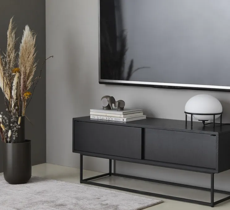 Cette lampe à poser mesure 22cm de hauteur et a un diamètre de 24cm. Le câble en tissu noir mesure 265cm.