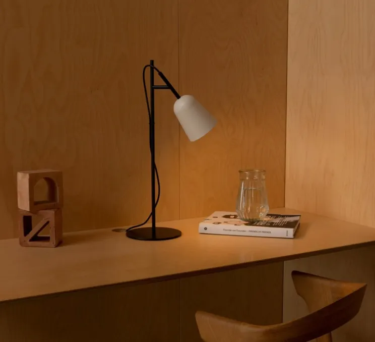 Cette lampe est idéale sur une table de chevet, un bureau ou une étagère. Grâce à son abat-jour orientable, elle permet un éclairage ciblé pour la lecture ou le travail. Elle fonctionne aussi très bien comme éclairage d’ambiance, apportant une touche graphique et urbaine.