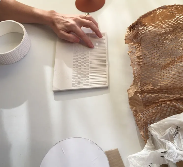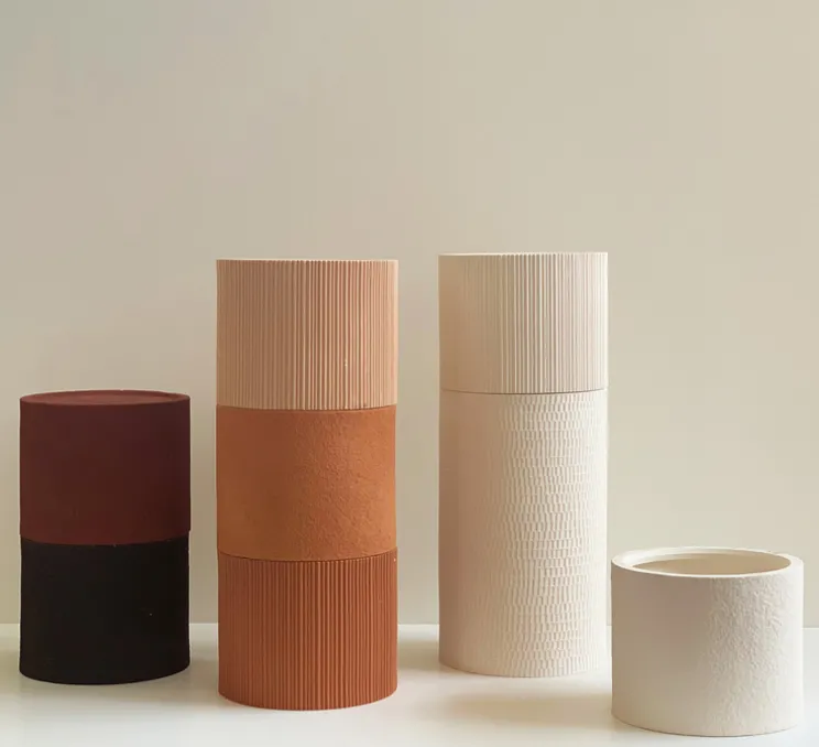 La collection de lampes Terra présente 3 textures différentes (sablé, linéaire et gravé), 5 couleurs ainsi que 3 parties customisables. Il est possible de personnaliser les coloris et la texture de la lampe de table (sous demande).