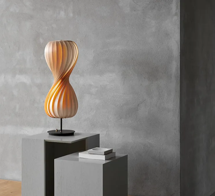 Le luminaire TR7 est composé d’une base circulaire avec interrupteur et câble, d’un petit corps tubulaire d’un abat-jour à la forme de sablier fait de lamelles de bouleau brut. Charmante et élégante, la lampe à poser TR7 s’intègre à chaque intérieur, ce que ce soit sur une table de chevet dans une chambre ou sur une console dans une entrée.