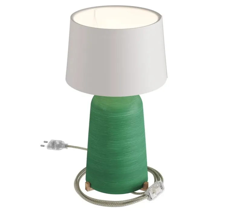 Avec sa base en céramique finition vert et son abat-jour Athena en tissu blanc, cette création s’inscrit dans un style naturel et intemporel. Chaque pièce est soigneusement conçue en Italie, alliant savoir-faire traditionnel et design contemporain.