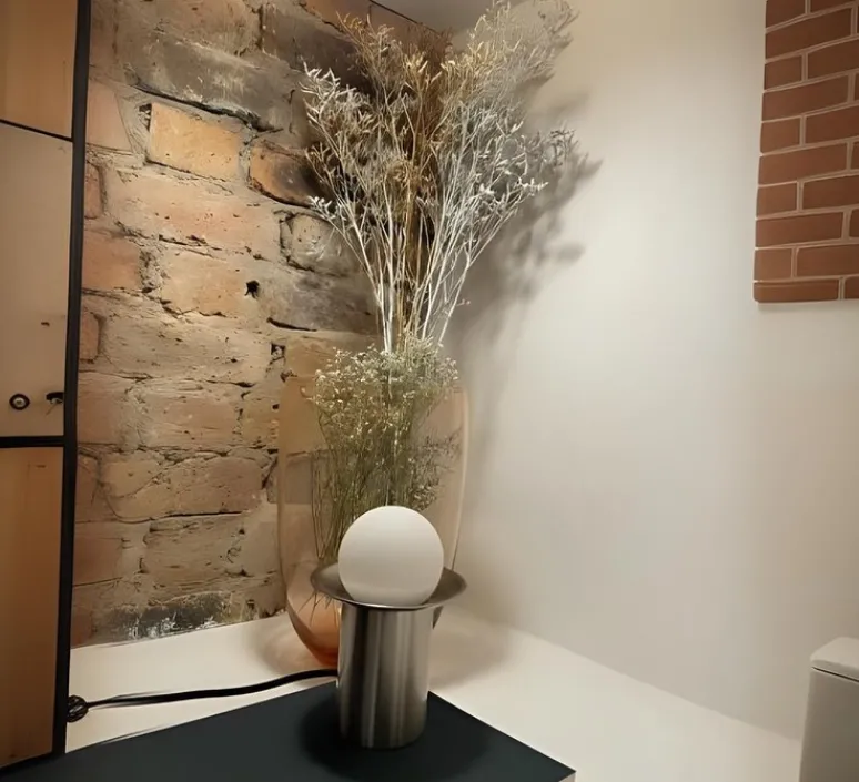 Avec sa base cylindrique en nickel satiné, son globe en verre opalin et son éclairage à 360°, elle apporte une lumière douce et diffuse, idéale pour créer une ambiance chaleureuse dans un salon, une chambre ou un bureau. Son style épuré s’intègre parfaitement dans des intérieurs élégants et sophistiqués. Associez-la à des éléments en métal ou des teintes sombres pour accentuer son côté chic, ou combinez-la à des matières naturelles pour jouer avec les contrastes.