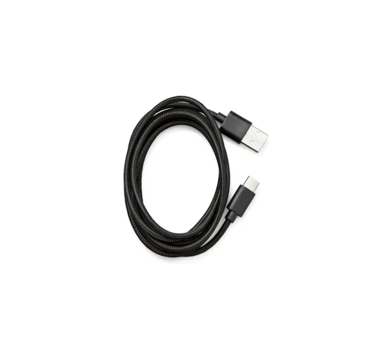 La lampe est fournie avec un chargeur à induction sans fil que l’on place sous le socle de la baladeuse et un câble USB /USB-C cord noir d’une longueur de 1,5 m. Le temps de recharge est de 9 h.