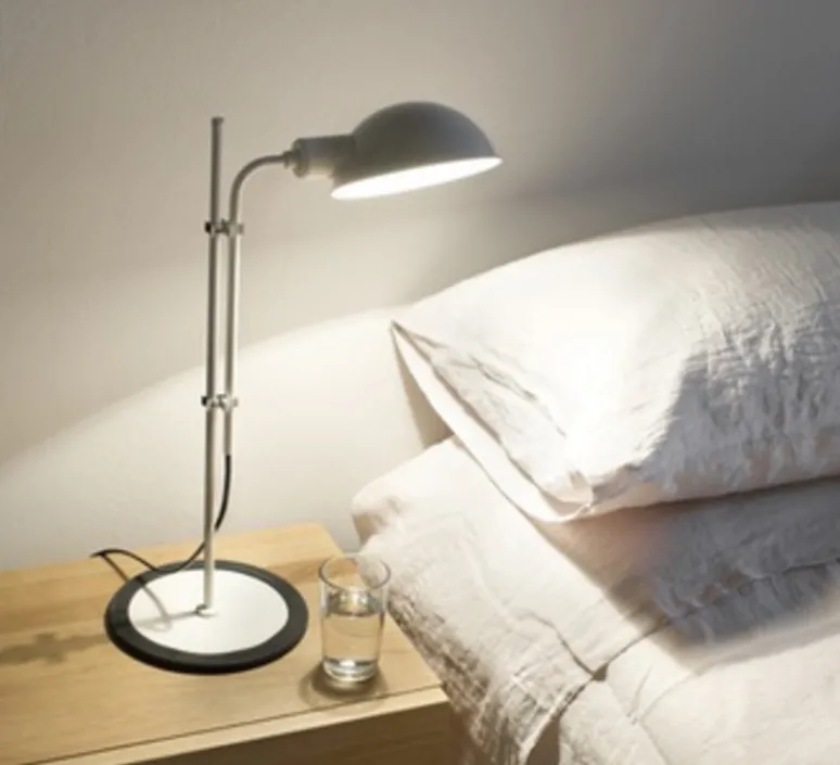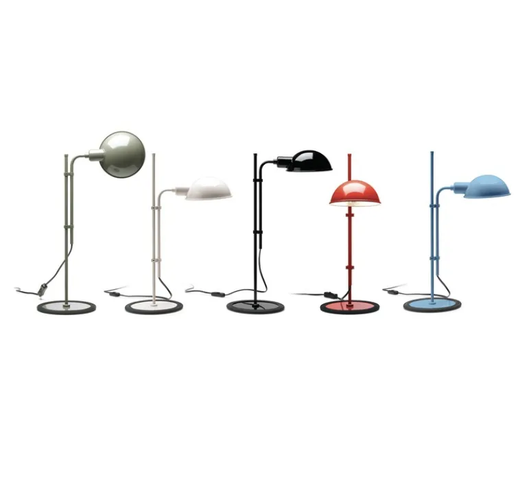 Le nom Funiculí vient du concept d’une action « funiculaire » – se déplacer de haut en bas. Le mécanisme pour soulever et abaisser la lampe consiste en une paire de pinces, ce qui rend très facile le réglage de la hauteur de l’abat-jour afin de répondre aux besoins de l’utilisateur. L’abat-jour lui-même peut être tourné à 360 degrés pour diriger le faisceau de lumière là où on en a besoin. La base de Funiculí est recouverte de caoutchouc sur le fond, afin d’éviter le contact froid entre le métal et le sol et cela ajoute également une certaine stabilité à la lampe. La lampe est disponible en noir, blanc et gris mousse et est déclinée en lampadaire et applique murale.