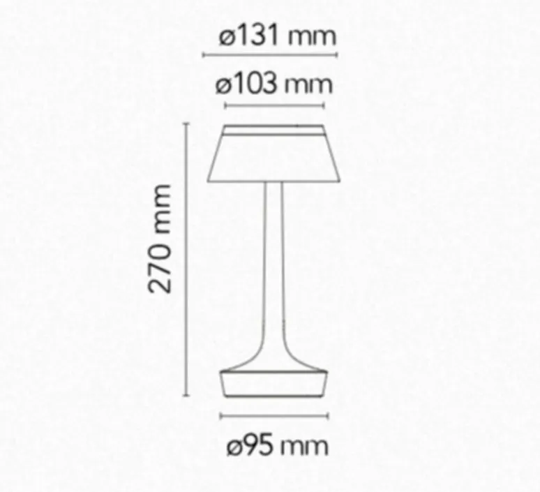 La lampe mesure 27cm de hauteur et 13,1cm de diamètre.