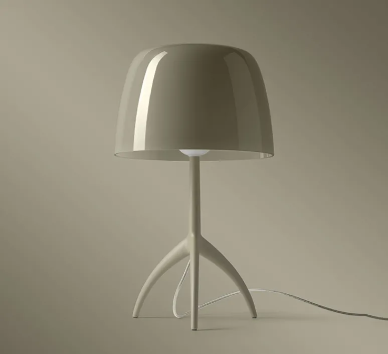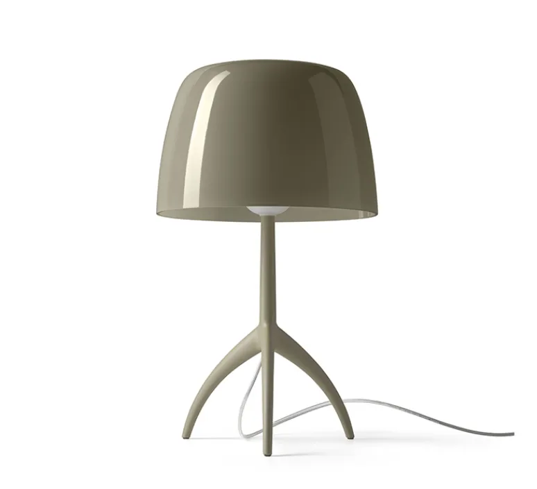 Lumiere est une lampe à poser dessinée par Rodolfo Dordoni en 1990 pour la marque Foscarini, se parant aujourd’hui d’une nouvelle finition : creta (vert).