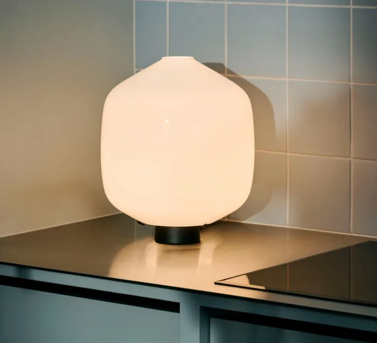 Dotée d’un abat-jour soufflé en verre opaque qui repose sur une base cylindrique noire, elle incarne l’équilibre parfait entre esthétique et praticité. Sa silhouette naturelle et courbée diffuse une lumière ambiante douce, idéale pour créer une atmosphère chaleureuse. Buoy offre une lumière directionnelle adaptée à divers espaces et usages.