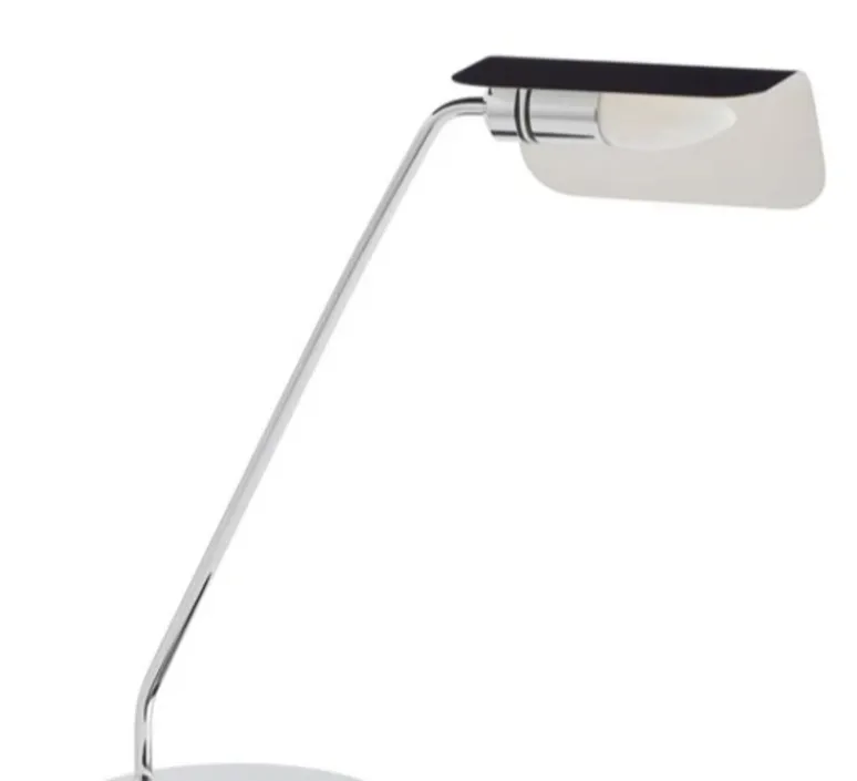 Avec son design cubique et son charme rétro, elle incarne une esthétique intemporelle qui peut se fondre harmonieusement dans divers styles de décoration intérieure tout en apportant une touche de caractère. Elle se compose d’une tige incurvée surmontée d’une plaque de métal colorée et courbée qui abrite la source lumineuse.
