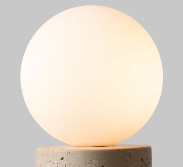 La lampe à poser Tivoli d’It’s about Romi, associe marbre et verre dans une forme cylindrique qui traduit l’esprit minéral de la marque.