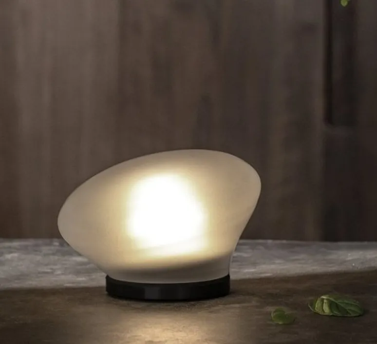 La lampe à poser Agua mesure 13 cm de diamètre et 9 cm de hauteur. Sa source lumineuse est incluse.
