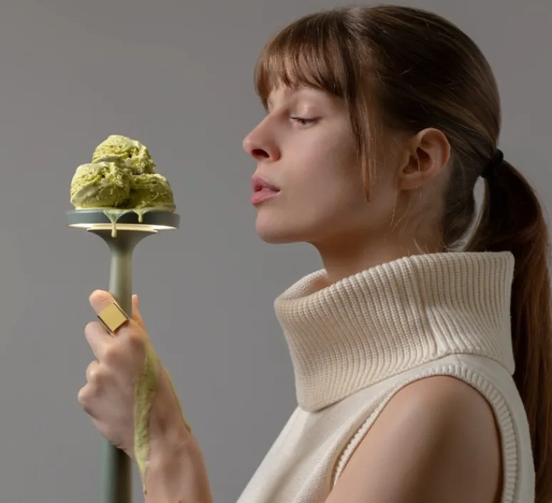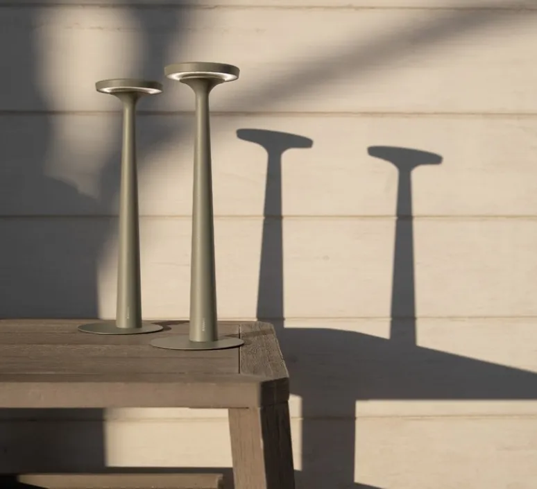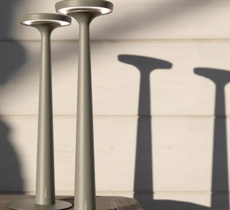 La lampe à poser Papiria en vert sauge, conçue par Edmondo Testaguzza pour Karman, allie élégance et fonctionnalité.
