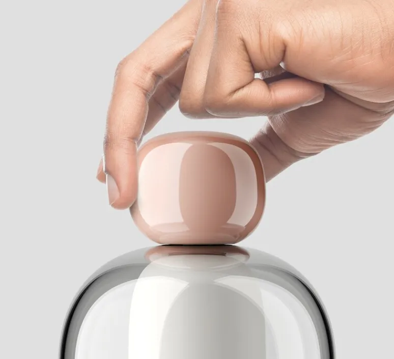 La lampe baladeuse Flamingo séduit par son design organique inspiré des formes des cloches; emblême de l’Italie, son pays natal. Sa silhouette rappelle celle d’une personne, avec un corps élancé et un pommeau faisant office de tête.