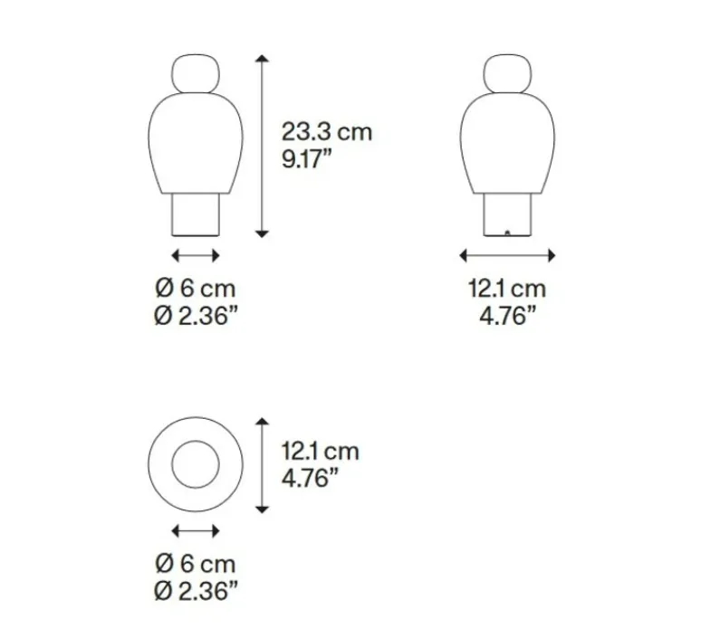 - L 12.1cm x H 23.3cm x P 12.1cm