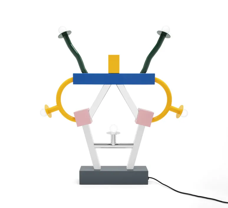 Découvrez la lampe à poser Ashoka imaginée par Ettore Sottsass pour la maison Italienne Memphis Milano.