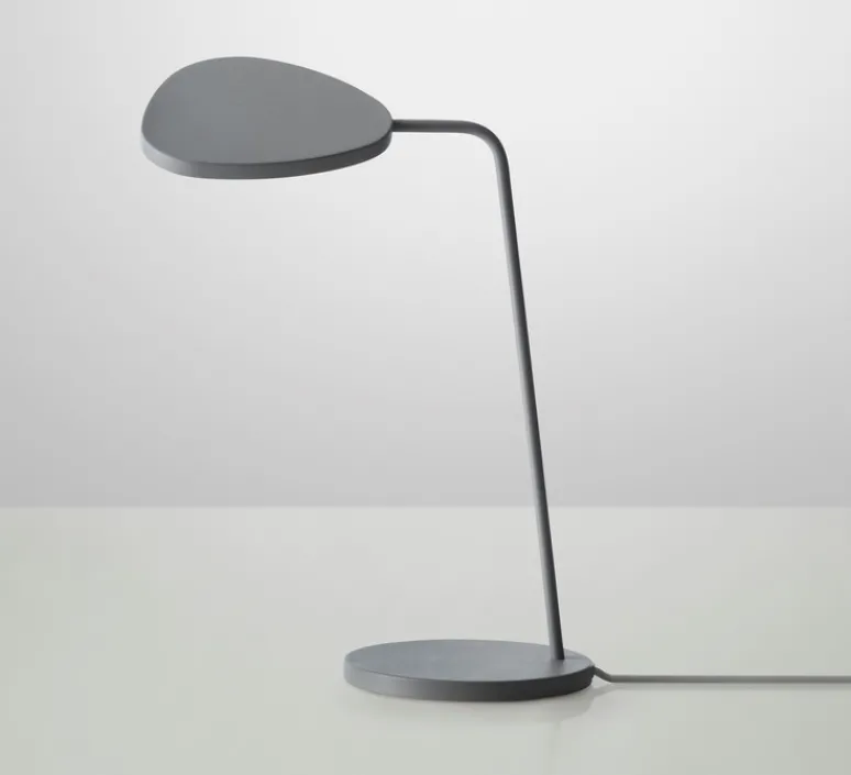 Le duo de designers Broberg & Ridderstrale nous présente son élégante lampe de bureau LEAF éditée par la maison d’édition suédoise Muuto. Ce luminaire combine avec succès un design léger et élégant avec une technologie LED à haut rendement énergétique (OLED). Sa structure est constitiuée d’aluminium et de laiton sur une hateur de 41cm, la tête rotative mesure 15x18cm. Bien que la conception soit minimaliste et simple, une géométrie asymétrique souple donne à la lampe une apparence organique et amicale. Selon l’angle de vue et la façon dont l’ombre est tournée, la lampe subtilement transforme sa forme pour créer une silhouette graphique en forme de feuille dans la pièce. Parfaite sur un bureau, mais aussi sur une console dans un entrée, ou en lampe de chevet.