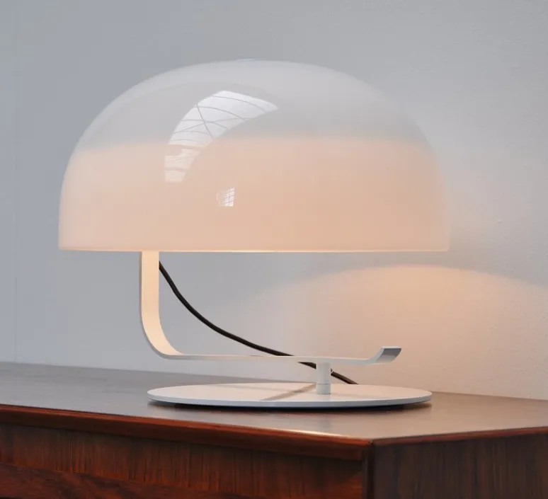 Elégant, le dôme blanc de Ø42cm monté sur un bras rotatif et une base de Ø18cm blanche s’intègre parfaitement dans votre salon, chambre, bureau… Cette lampe iconique des années 60 propage une lumière agréable et douce.