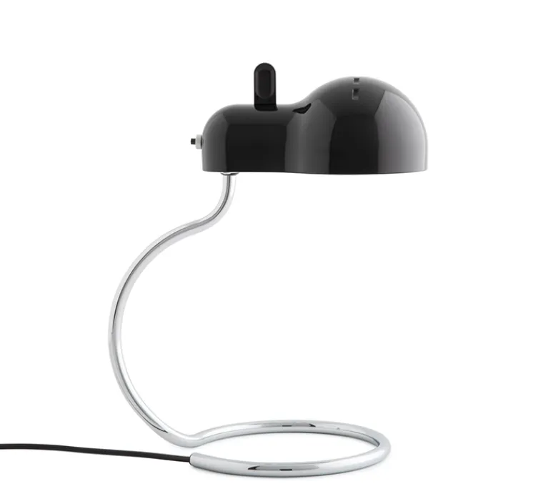 Le luminaire Minitopo est composé d’un long corps sous la forme d’un tube flexible et d’un abat-jour avec interrupteur et poignée, embrassant parfaitement la forme de l’ampoule qu’il accueille. Minitopo a diverses sources d’inspiration : l’univers automobile et la souris (topo en italien). Flexible et fonctionnel, la lampe à poser Minitopo est idéale sur un bureau ou une table de chevet.