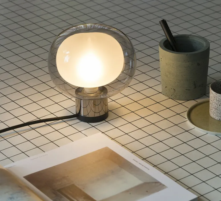 Le luminaire Nabila est composé d’une petite base tubulaire et d’un diffuseur fait de deux globes de verre soufflé. Collection inspirée de l’élégance et de la sophistication des années 50, Nabila est d’une opulence sobre qui s’intègre dans chaque espace, que ce soit dans une pièce de vie, une chambre ou un bureau.