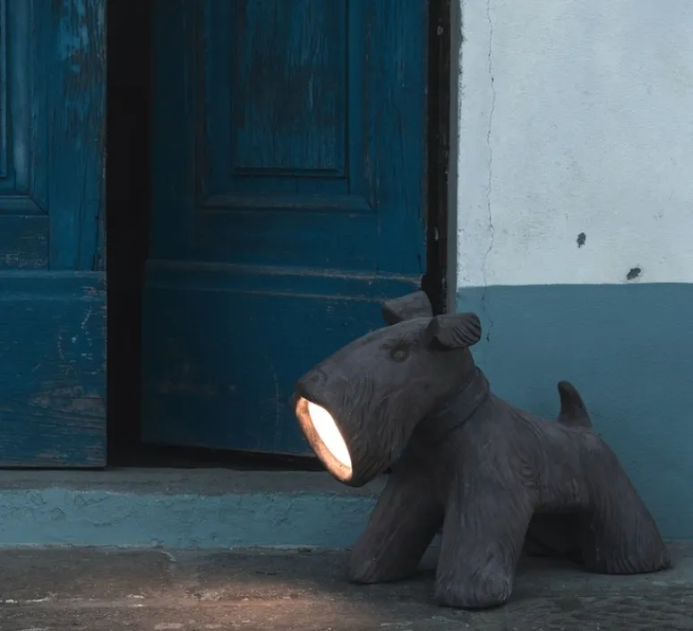 La lampe à poser de jardin Jules représente un terrier écossais. Cette lampe est pressée à la main en 7 pièces différentes et assemblée avec de la terre cuite d’extérieur cuite à 1260°.