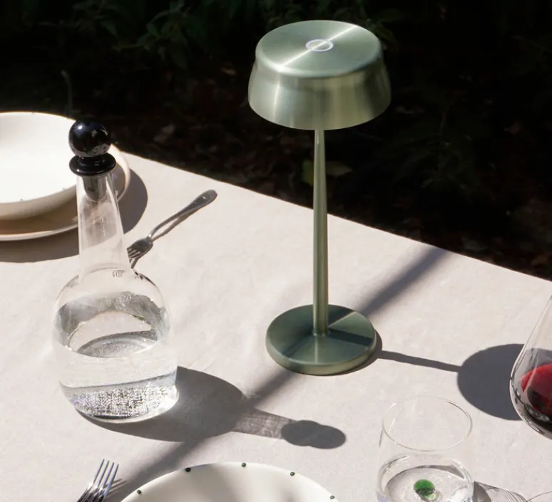 La lampe Sister Light mesure Ø13,2 cm de diamètre pour 32,8 cm de hauteur. Elle est équipée d’une source LED incluse, avec un éclairage direct à un angle de 180° et une luminosité ajustable entre 250 et 338 lumens. Sa batterie rechargeable assure une utilisation pratique et autonome, et peut être contrôlée à distance via l’application Zafferano Lighting. La lampe dispose également d’un système de contrôle électronique, optimisant l’autonomie et garantissant un flux lumineux constant jusqu’à l’épuisement de la batterie.