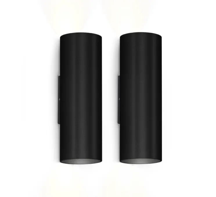 Les dimensions de l’applique murale sont de 20 cm de hauteur et 6,7 cm de diamètre. Disponible en différents coloris (noir, blanc, cuivre et aluminium brossé) et en différentes tailles avec ou sans le système LED.