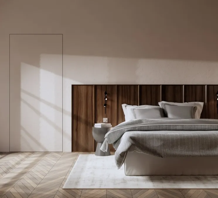 Les panneaux s’assemblent et forment au gré des envies, une tête de lit sur mesure, un soubassement ou encore une composition murale.