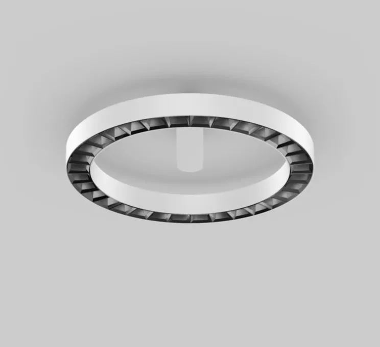 Le plafonnier Mita Circle 450 se distingue par son design contemporain et minimaliste. Son corps en forme d’anneau, réalisé en aluminium moulé sous pression, affiche une silhouette élancée et une finition thermolaquée blanche qui lui confère une élégance intemporelle.