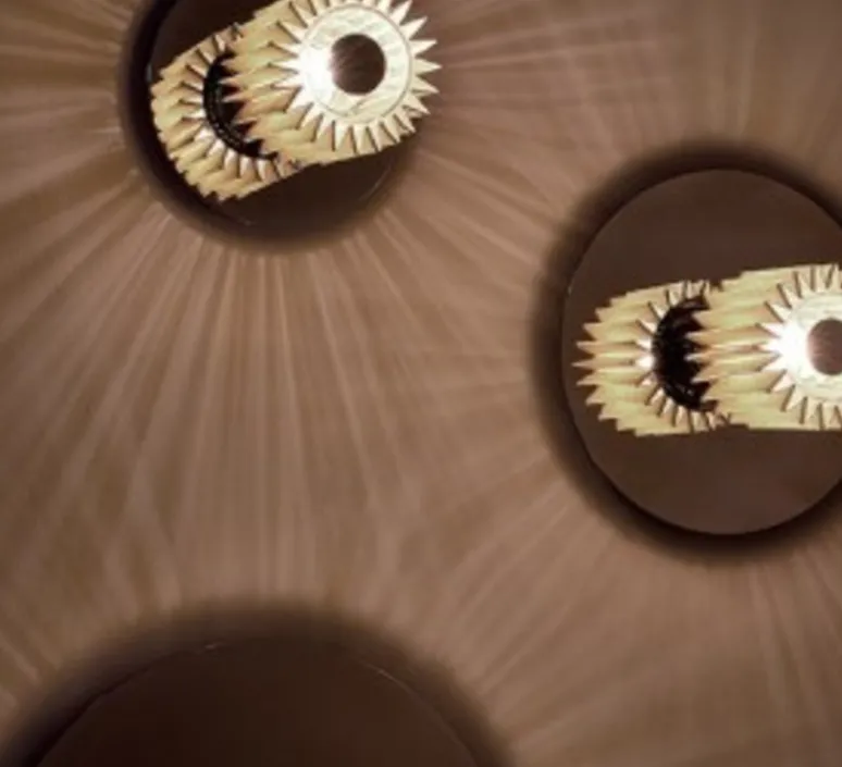 Elle peut faire aussi l’objet d’un plafonnier et elle reprend la forme du soleil, l’emblème du monarque. De couleur argentée, elle apporte une lumière à la fois directe et filtrée à travers la maille avec de somptueux faisceaux lumineux sur le mur.