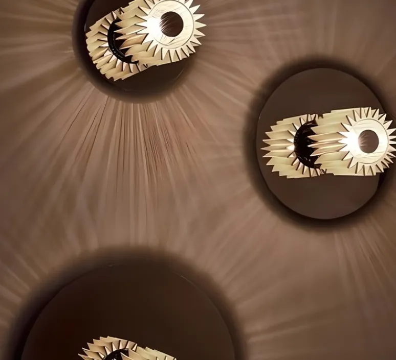 Elle peut ainsi faire l’objet d’un plafonnier qui reprend la forme du soleil, l’emblème du monarque. Son design de couleur argent procure une lumière à la fois directe et filtrée à travers la maille avec de somptueux faisceaux lumineux sur le mur.